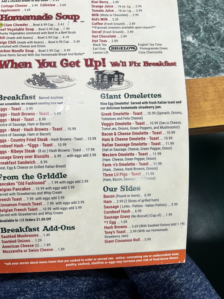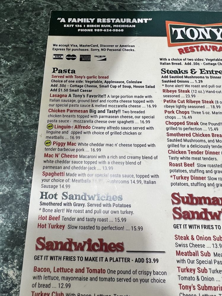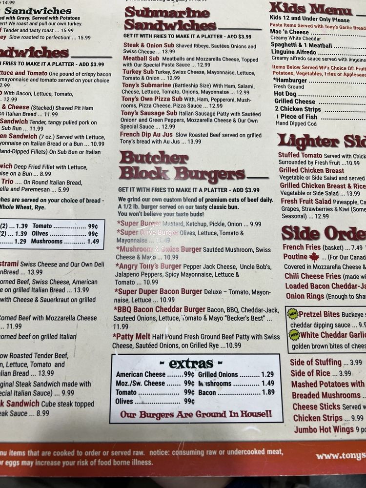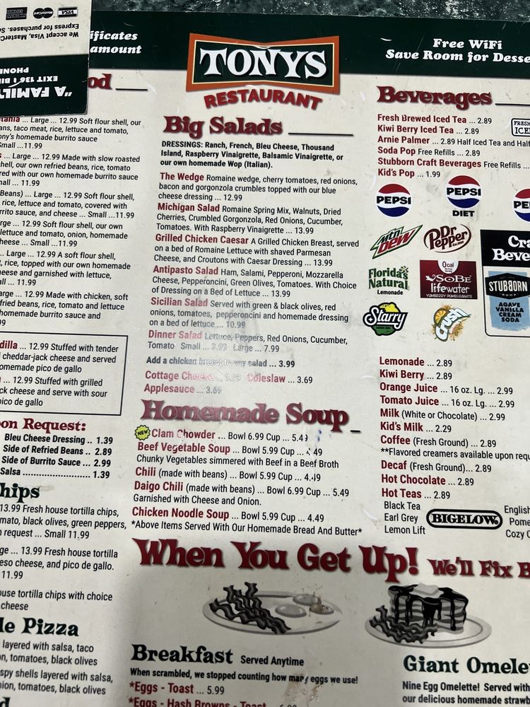 Tony's I-75 Restaurant Menu